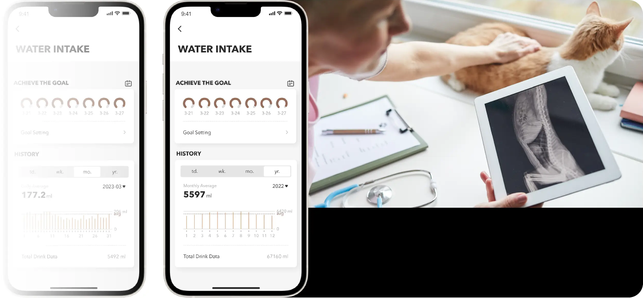 drink 240ml water/day (including one can, 50g kibble,