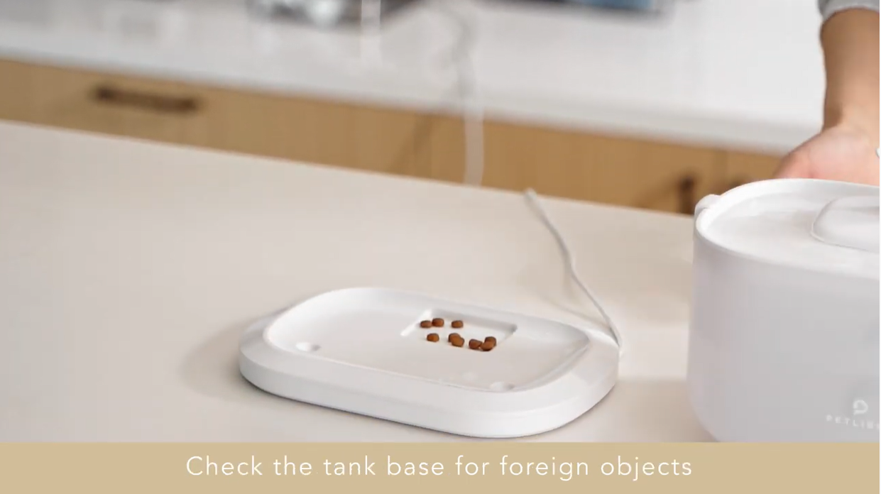 A: 1) Fill in water between MIN and MAX. The pump will fail if it runs dry. 2) Clean the pump, water tank, and drinking basin. 3) If the above solutions don't work, please contact us at help@petlibro.com.
