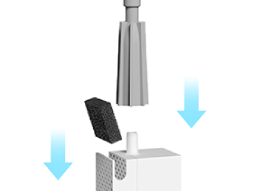 Place the water tank on the charging base by aligning the protruding hole of the water tank with the tank base.