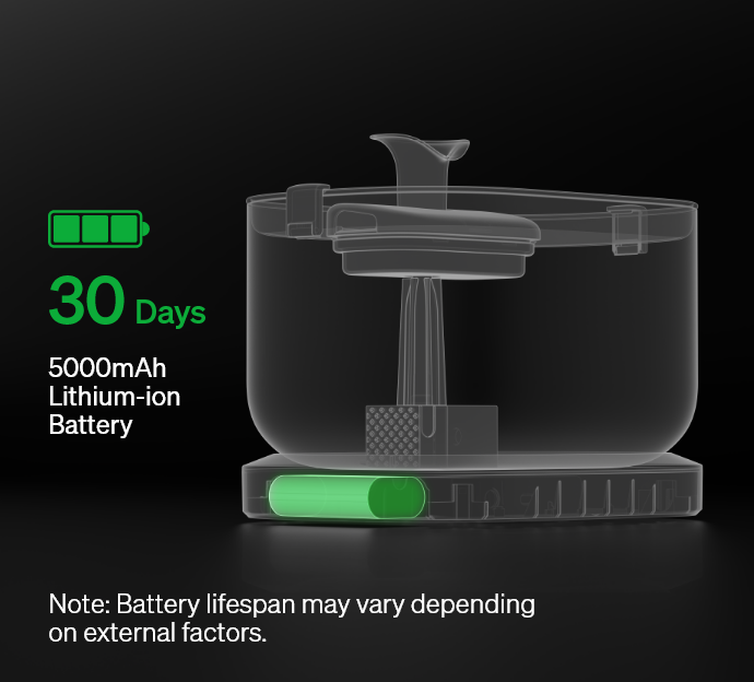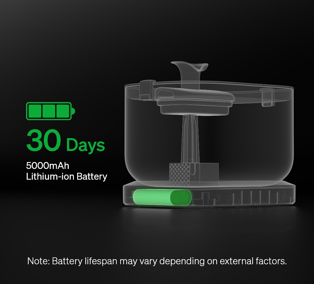 Enjoy cordless freedom thanks to the fountain battery's long-lasting 30 day lifespan.