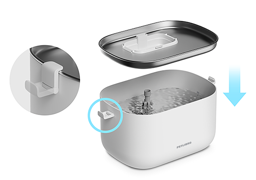 Add water to the tank, install the water tray, and fasten the snap lids.