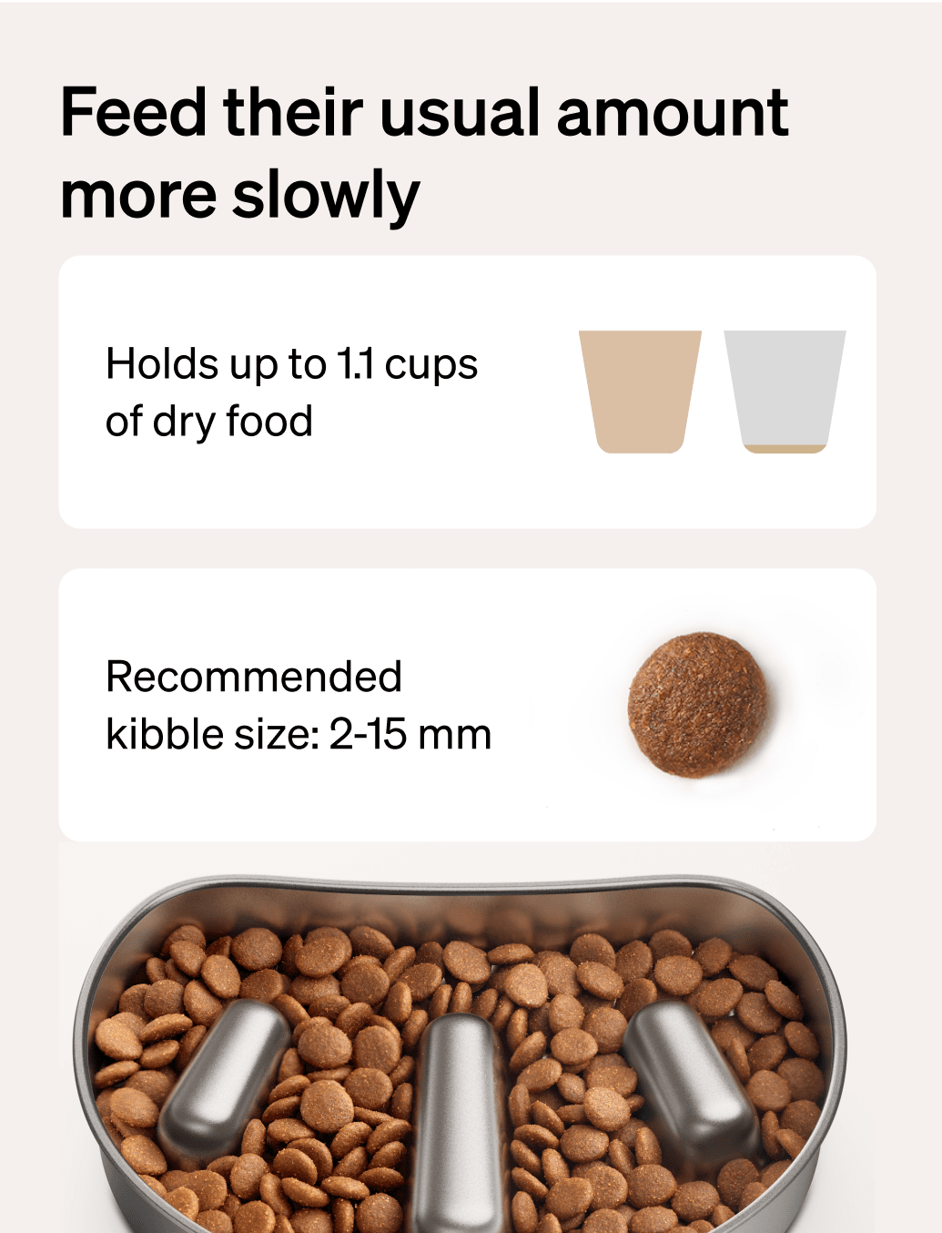 Patented raised ridges stop pets from gulping down food.