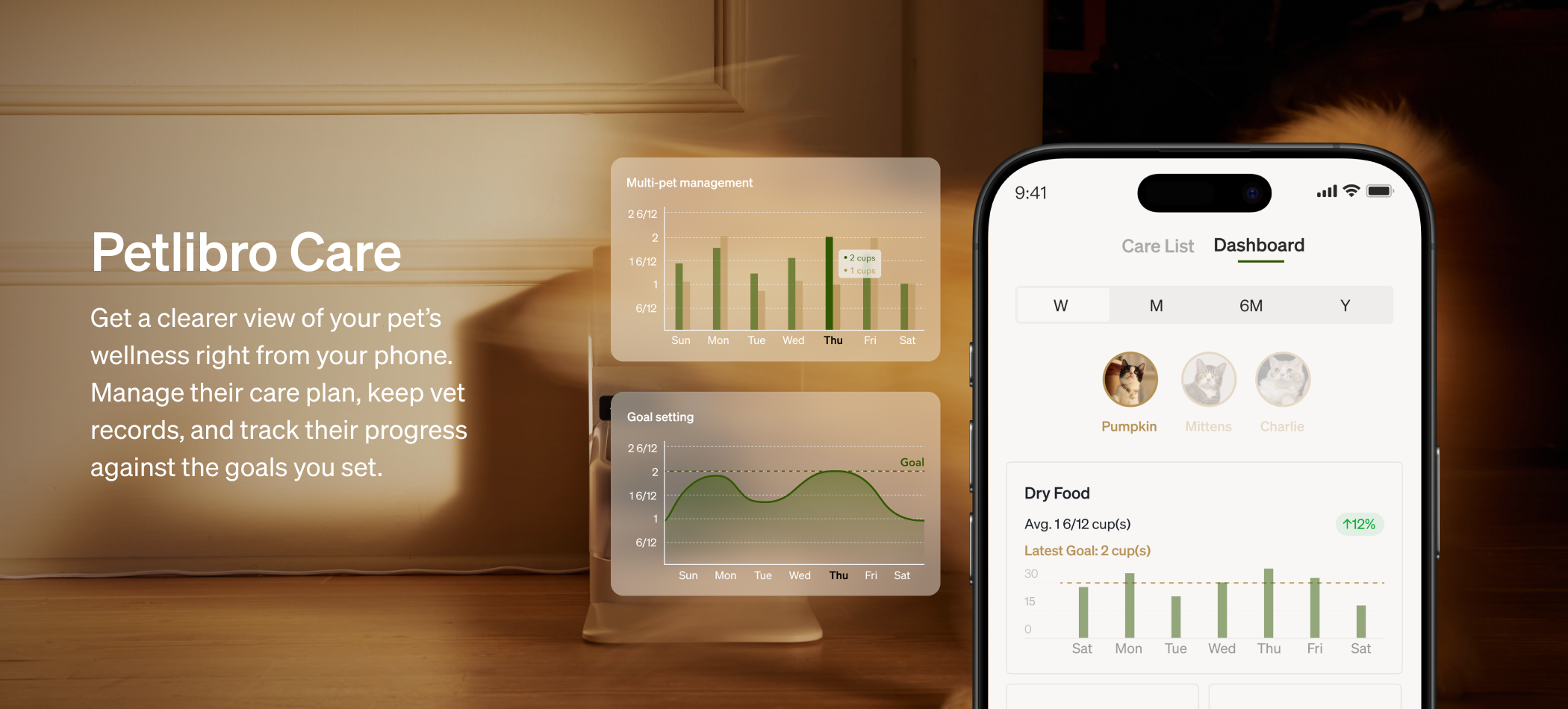 Easily manage the care of multiple pets with individual profiles and personalized goals.