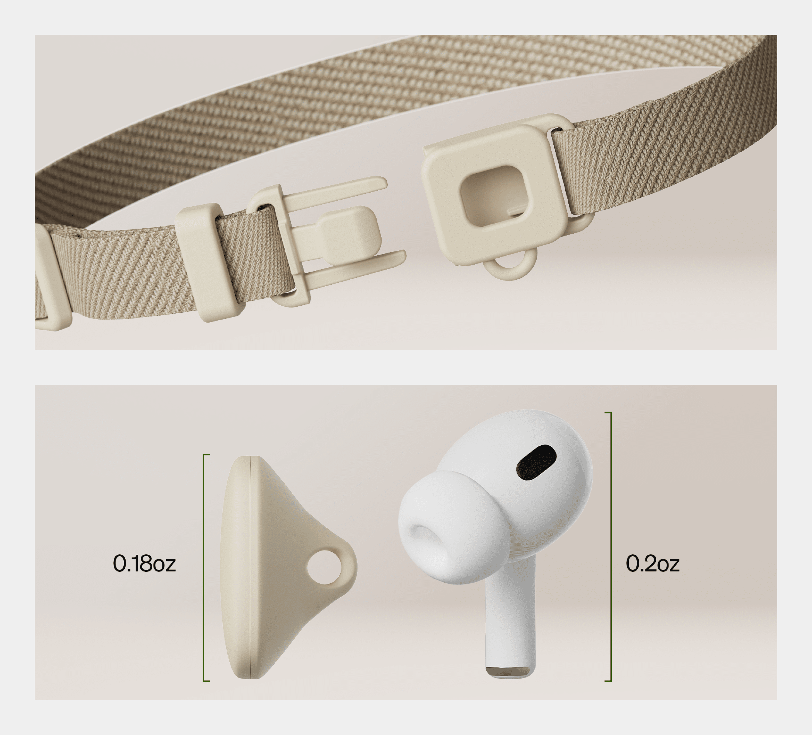 Note: The tag weighs 0.15oz, while an AirPod weighs 0.18oz